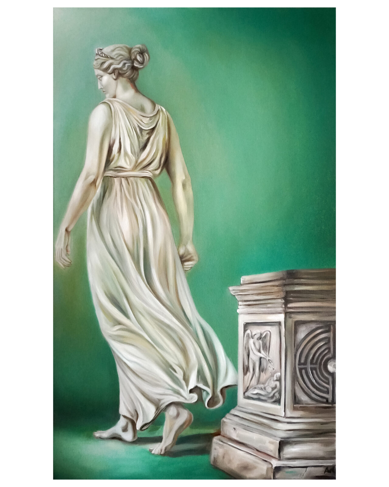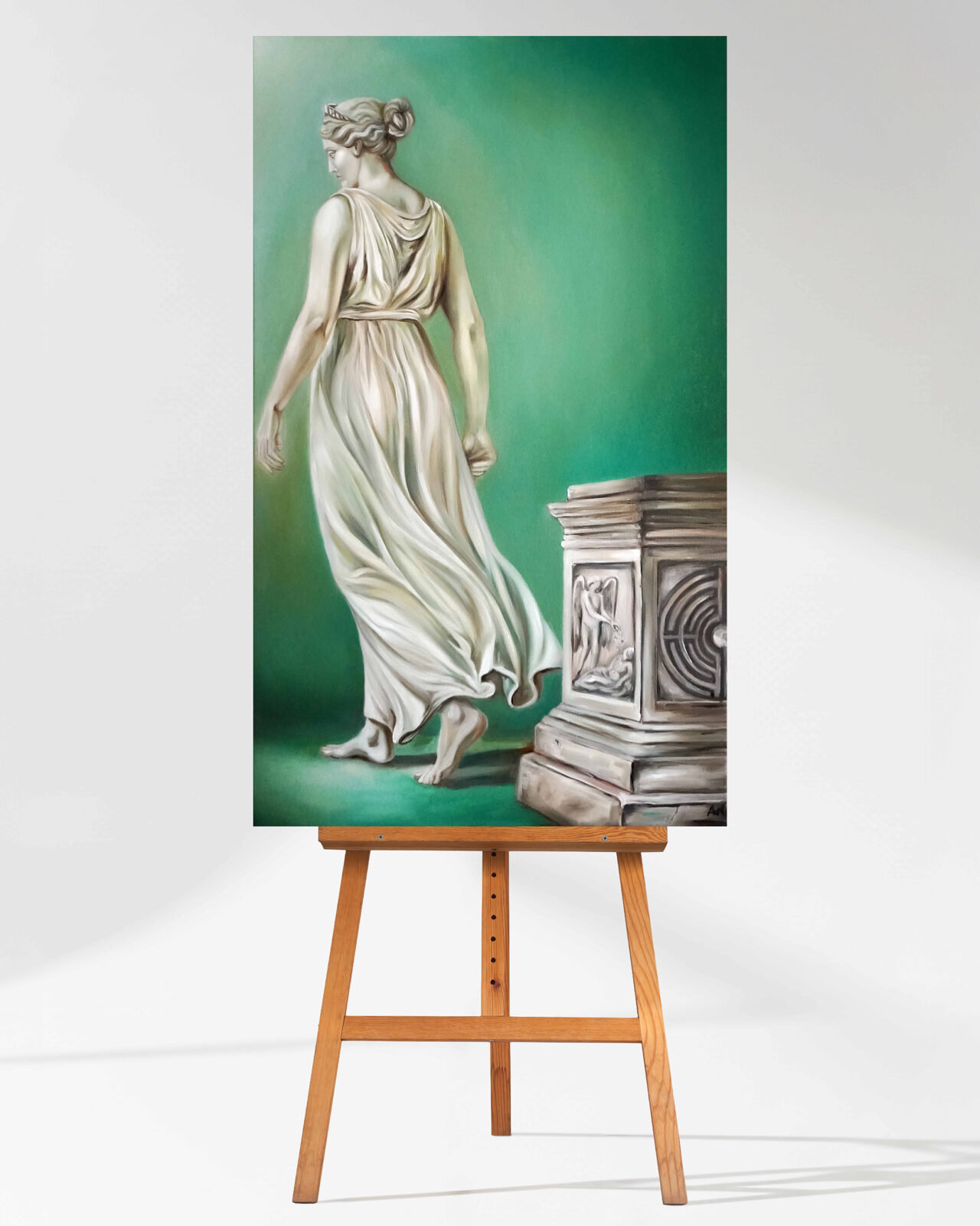 Obraz ten jest propozycją dla kolekcjonerów poszukujących w sztuce czegoś więcej niż estetyki – to dzieło dla osób ceniących malarstwo intelektualne, skłaniające do wielopoziomowej interpretacji. „Koniec mitu” dzięki swojej uniwersalnej tematyce i doskonałemu wykonaniu technicznemu stanowi silny akcent w każdej kolekcji sztuki nowoczesnej. To inwestycja w twórczość artystki, która konsekwentnie buduje swój własny, rozpoznawalny język wizualny, łącząc tradycję warsztatową z nowoczesnym komentarzem do kondycji człowieka.