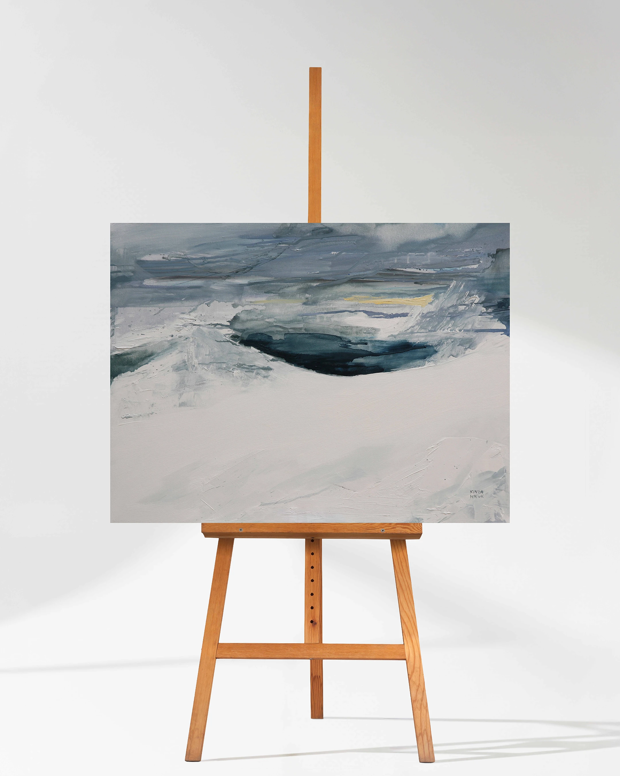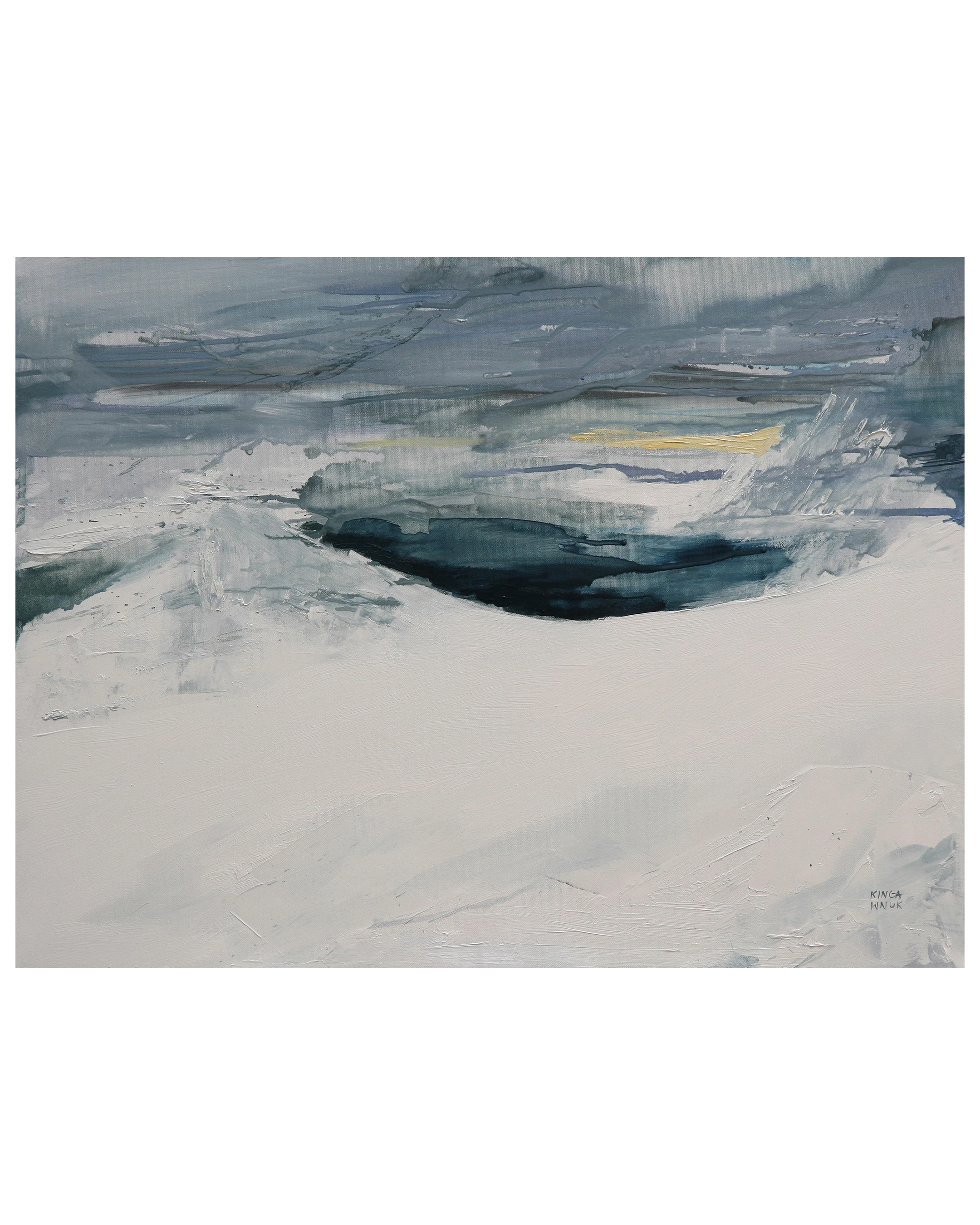 „Z Kasprowego Zima” to doskonały przykład nowoczesnej interpretacji klasycznego tematu. Artystka unika turystycznej dosłowności, stawiając na malarską syntezę i ekspresję. Patrząc na ten obraz, widz doświadcza surowości mroźnego powietrza i monumentalności gór. To praca o dużej sile wyrazu, stworzona dla kolekcjonerów poszukujących w sztuce powściągliwości połączonej z silnym ładunkiem emocjonalnym.