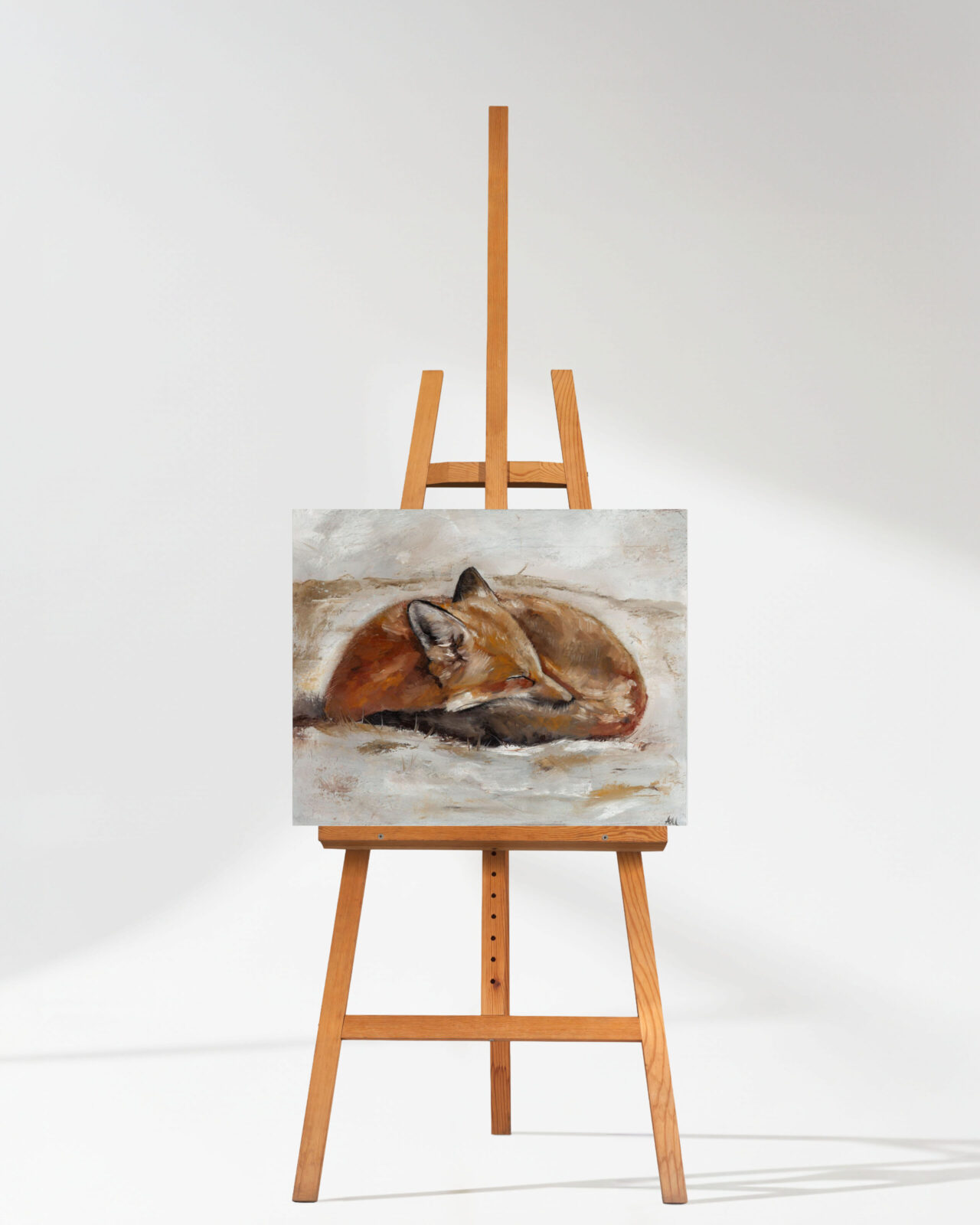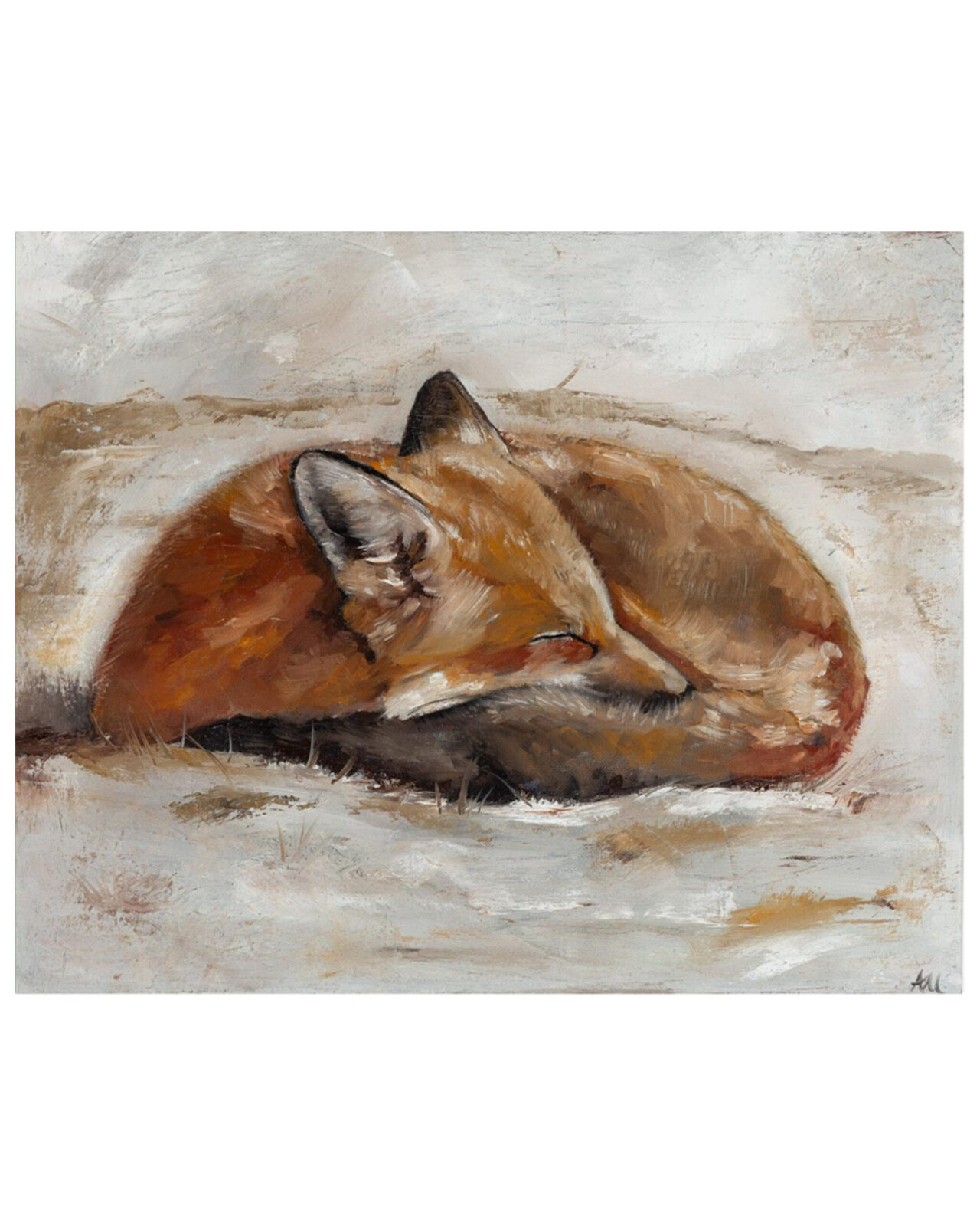 Opis produktu: „Ryży” to niezwykle ciepłe i pełne uroku studium natury, teraz dostępne jako ekskluzywna, limitowana edycja Giclée. Praca przedstawia zwiniętego w kłębek, śpiącego lisa, co symbolizuje spokój, bezpieczeństwo i harmonię z przyrodą. Dzięki zastosowaniu zaawansowanej technologii druku pigmentowego, każdy detal – od miękkości futra po subtelne tekstury tła – został oddany z najwyższą precyzją, niemal nieodróżnialną od oryginału olejnego.