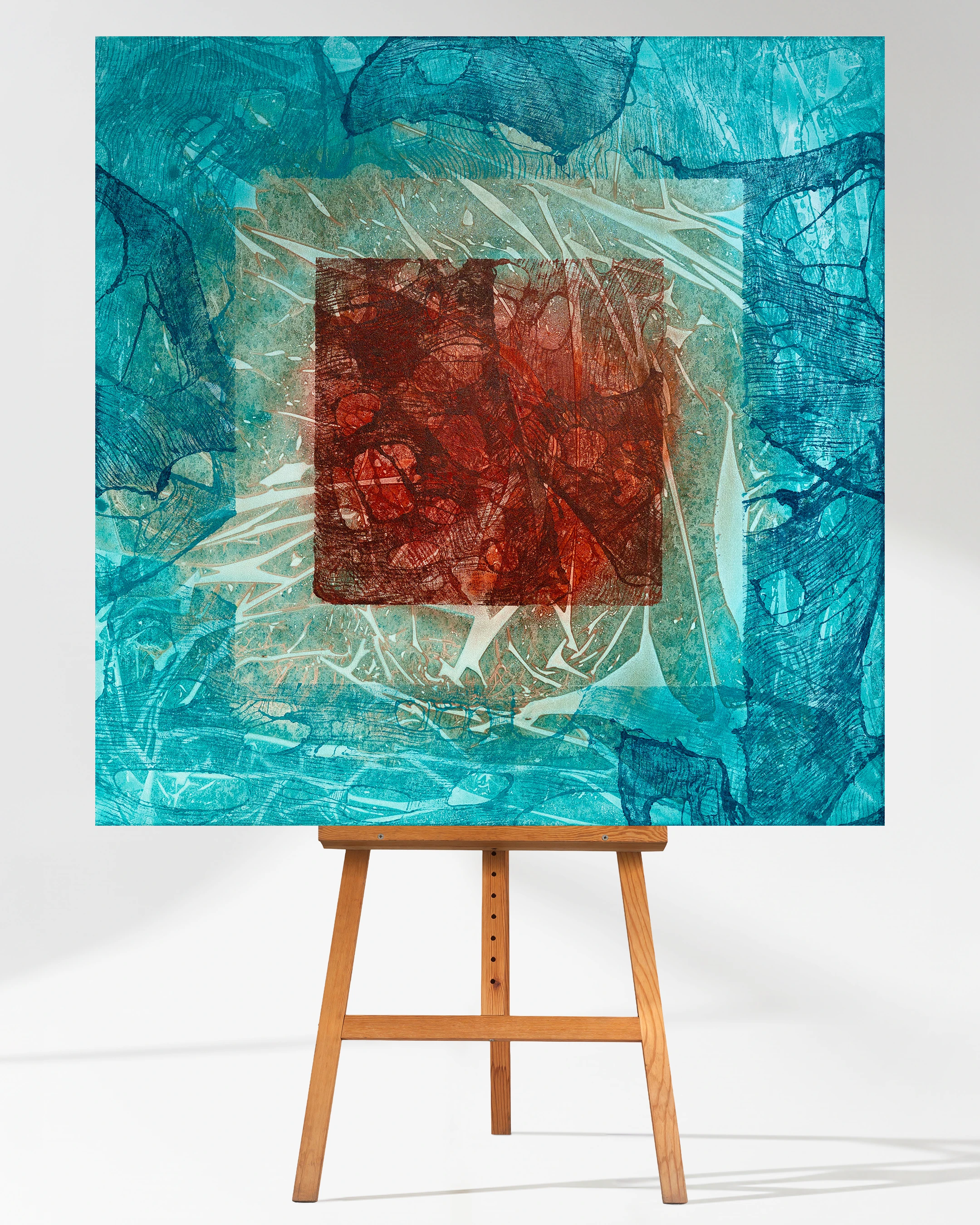 „Burning Inside” to portret chwili, w której emocje zaczynają płonąć pod powierzchnią. Chłodne błękity wokół przypominają zewnętrzny spokój i opanowanie, ale w samym centrum tli się intensywna, czerwona przestrzeń — jak ogień, który rośnie, pulsuje i nie daje się już zignorować. To obraz o wewnętrznym napięciu, o uczuciach, które dojrzewają w ciszy, aż w końcu stają się zbyt silne, by je ukrywać. Jest w nim jednocześnie siła i niepokój — energia, która może niszczyć, ale też prowadzić do zmiany i oczyszczenia. To moment, w którym człowiek czuje, że coś w nim płonie i domaga się wyjścia na powierzchnię